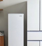同時期に購入した電子レンジ共々、後発のこのメーカーの製品は生い立ちからして一概にコスパがいい上に信頼できる。本品も単身用としてなら概ね満足だが、思ったよりも「冷蔵」の容積が少ないし、特にドアポケットが小さい。(その分か?)「冷凍」庫の容積は大きく感じるのだが、収納3段がすべて透明の引き出しボックスのため、いざ「氷」を作るためのトレイ、さらにできた氷をストックする容器もいちいち「ドア」を90°開けて引き出しを引かないといけないのは面倒だし、冷気のムダだろう。要は上2段くらいは普通の棚にして欲しかった。