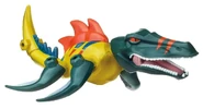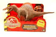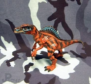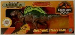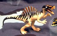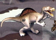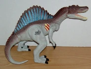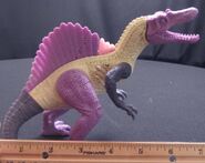 1999年ごろに発売されたスピノサウルスの玩具。 これが出た2年後に彼女は映画デビューを果たすのだが、その姿は銀幕より現れた姿から遠くかけ離れている。 (これでよくワニ型のアレになったなと思わずを得ない、それだけメチャクチャなデザインをされている)
