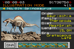 とあるゲームをクリアすると、CGアートとスピノサウルスの解説が見られる。