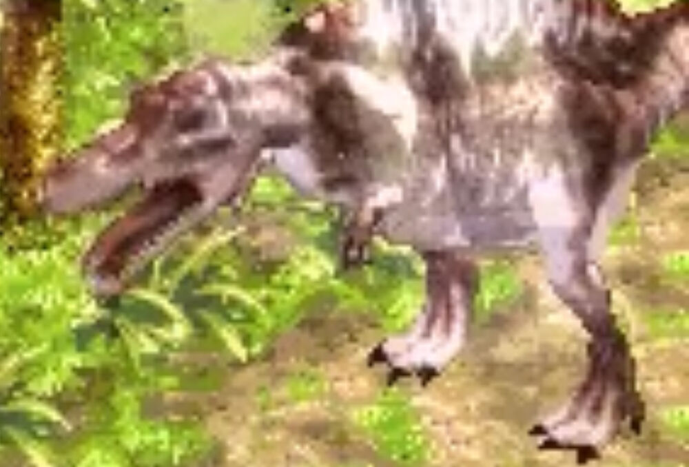 ちなみに戦闘力はゲーム内に実装された大型肉食恐竜の中ではインドミナス・レックス、ティラノサウルスに次ぐ値で、看板恐竜として貫禄の立ち位置。 ただし今作の戦闘はステータスが全てで乱数は一切ないので、真っ向勝負だとティラノサウルスには絶対に勝てないという悲しみがある。 公式からリリースされたT-REXの紹介映像では夢の対決が再び描かれたものの意趣返しとばかり倒される結末を辿っており、JW当時の世相もあってかやや不遇である。