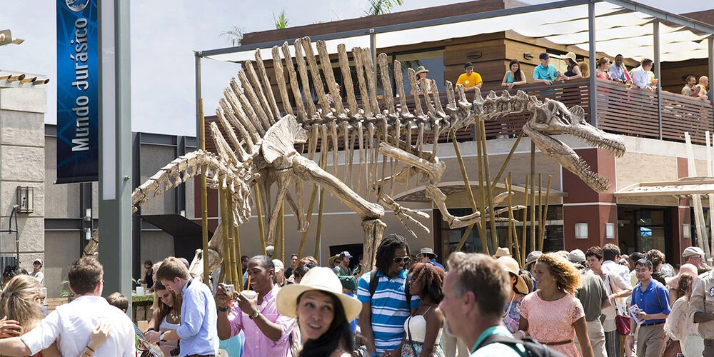 頭に鶏冠が備わっていることから、Ⅲに登場した個体ではなく現実世界で生きていたスピノサウルスの骨格を復元したものと思われる。 ちなみに、この映画が公開された2015年は、スピノサウルスの化石が世界で初めて発見されてからちょうど100年が経過した年でもある。