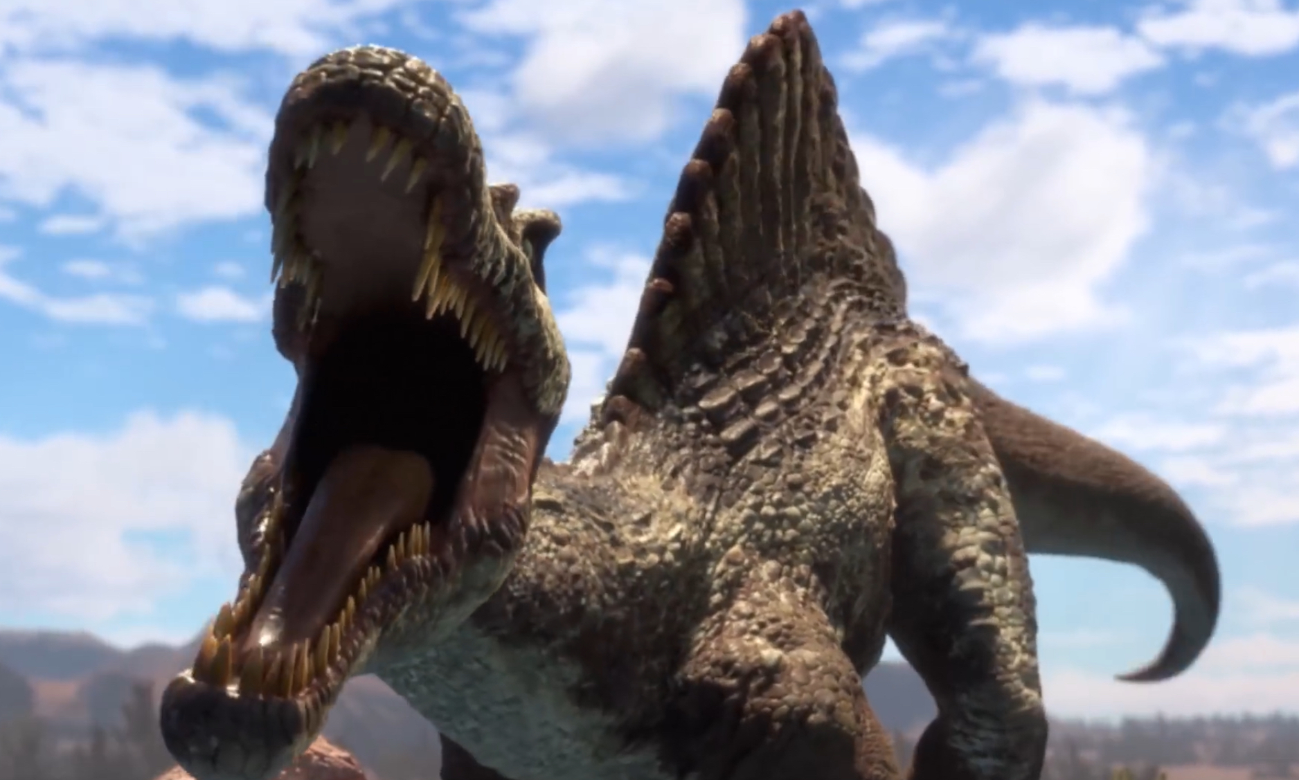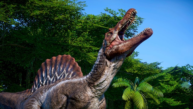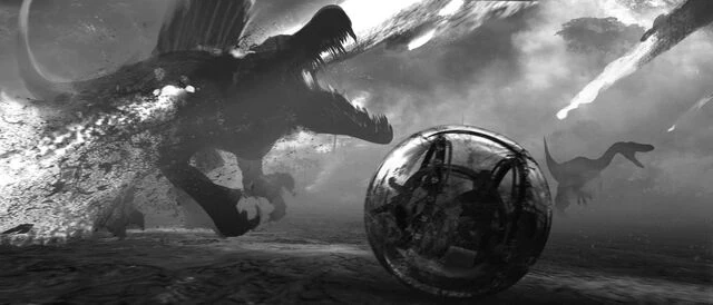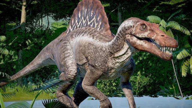 ただ今作におけるスピノサウルスは、見慣れたⅢ時の姿ではなく、恐竜データの項にて記載した最新の研究によって判明した姿として登場している。 作中では水陸両用の生物として、同族のスピノサウルス数頭に加えてモササウルスとタッグを組んで暴れ回るなど、久々のブランクを感じさせないレベルの爪痕を残した。