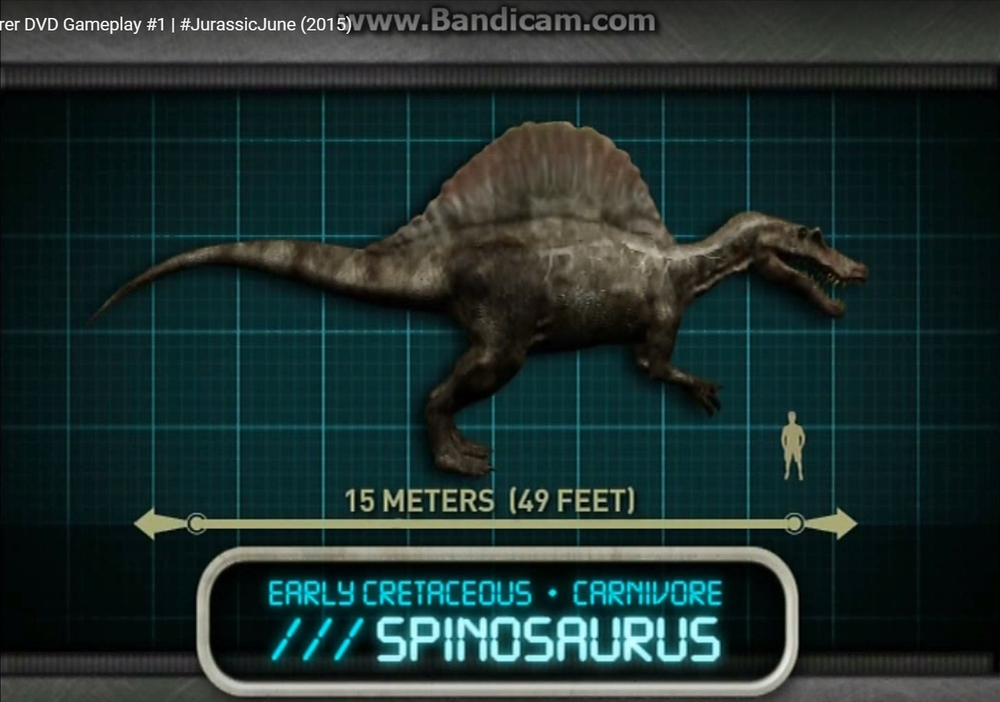 - 映画では圧倒的な強さでティラノサウルスを打ち負かしたスピノサウルスだが、もし実際に中世代にて両者が対峙したと仮定した場合、敗北するのはスピノサウルスであると言われている。