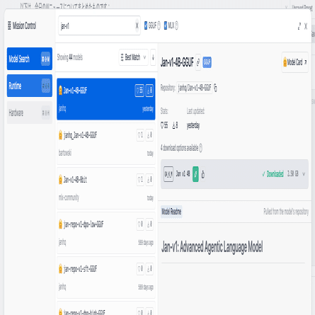 次に、LM Studioを立ち上げてJan-V1をダウンロードしておく。