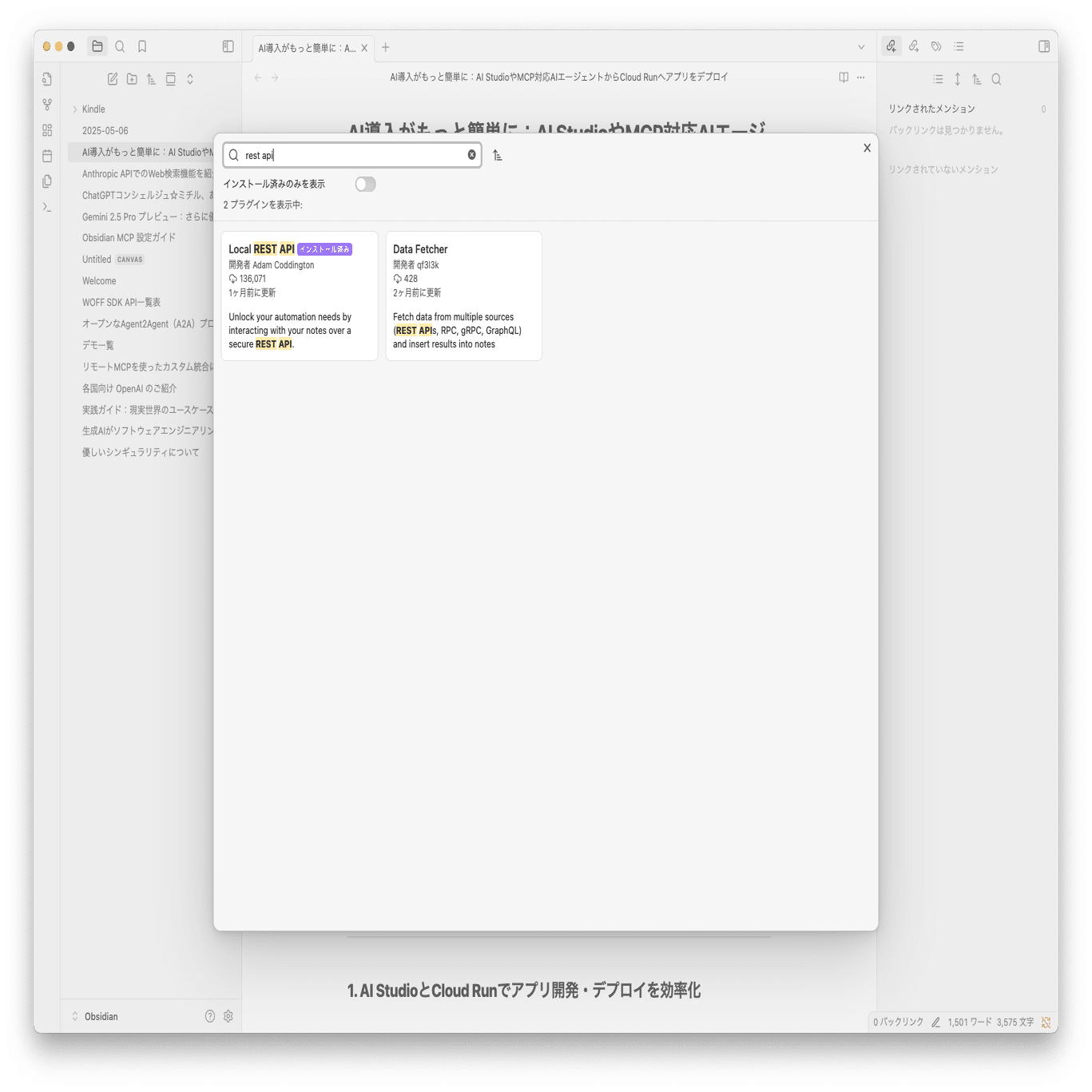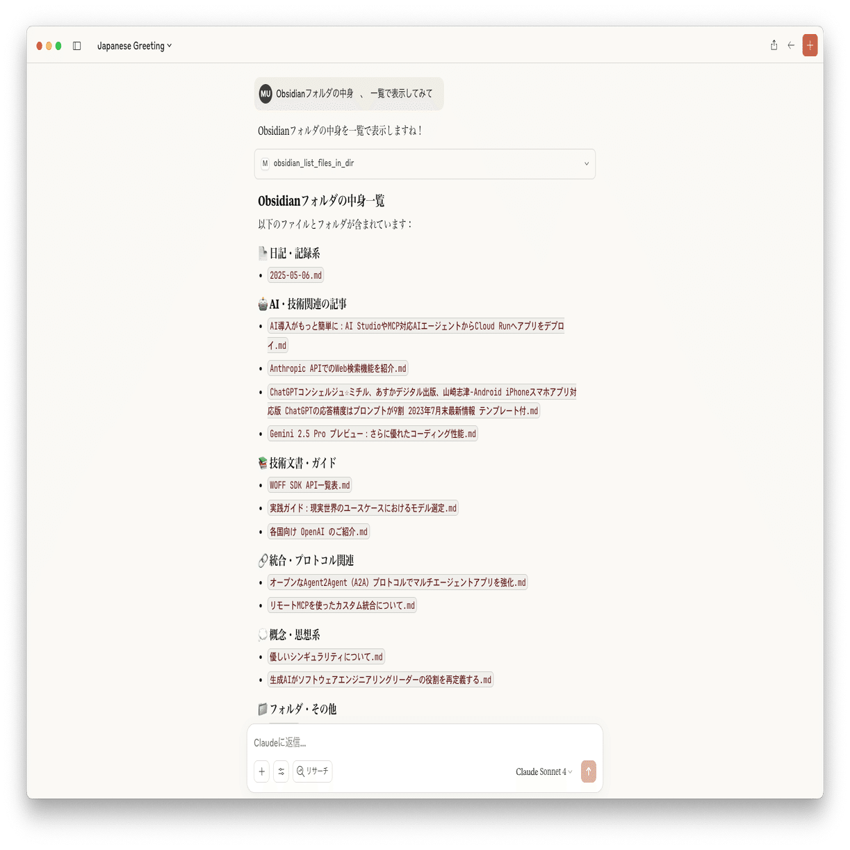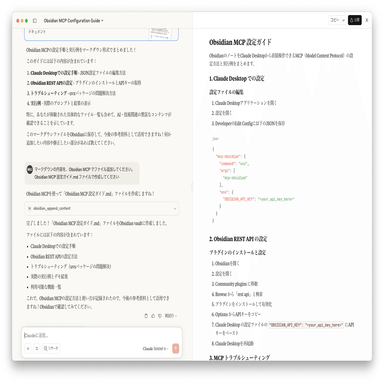 この記事も、Claude Desktopでまとめて、マークダウンファイルをObsidianに出力してから作成しました〜!