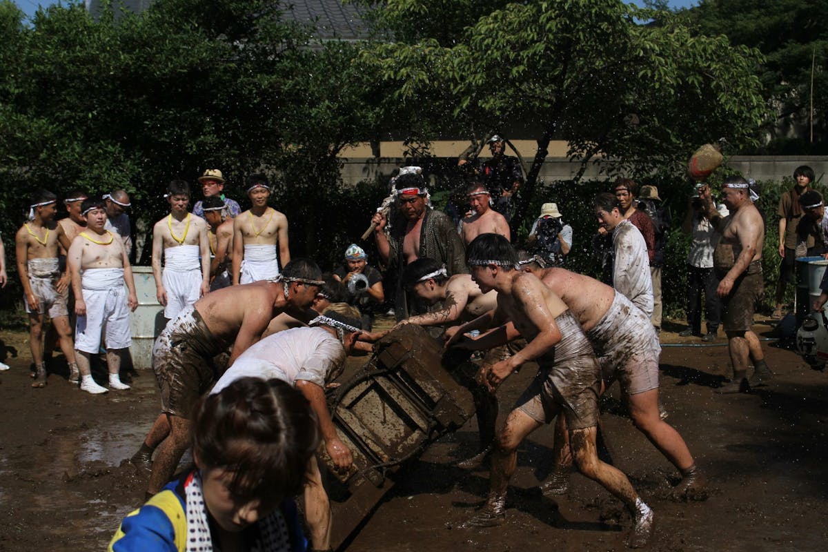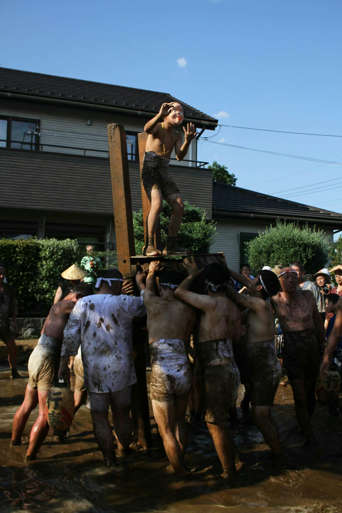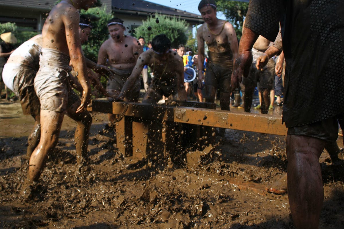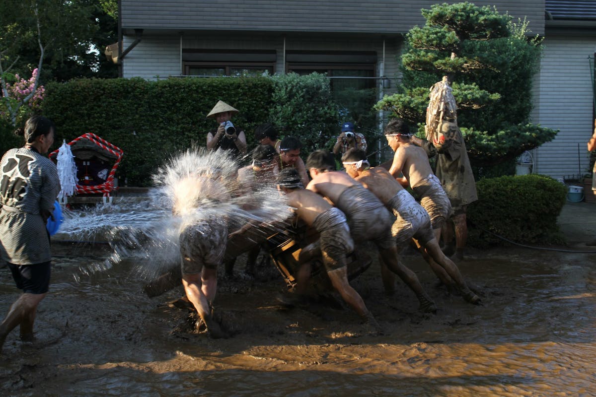 私も撮影中にあえなく派手に泥まみれになったのですが、隣のおじさんが「ご利益あるねぇ」とニコニコ声をかけてくれました。