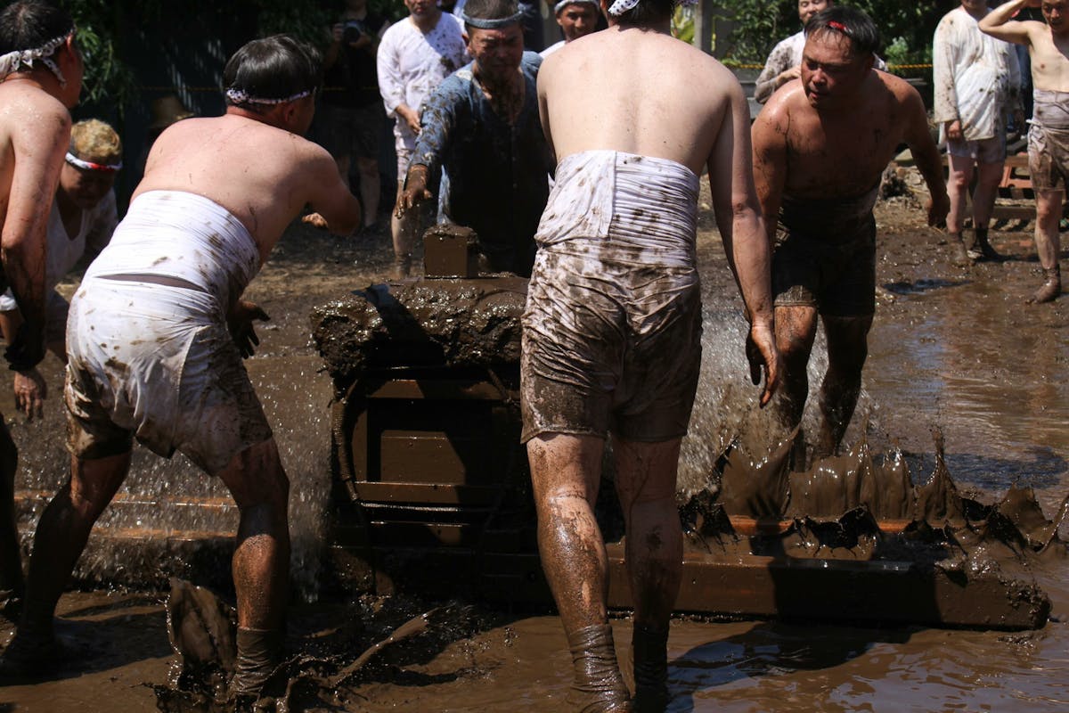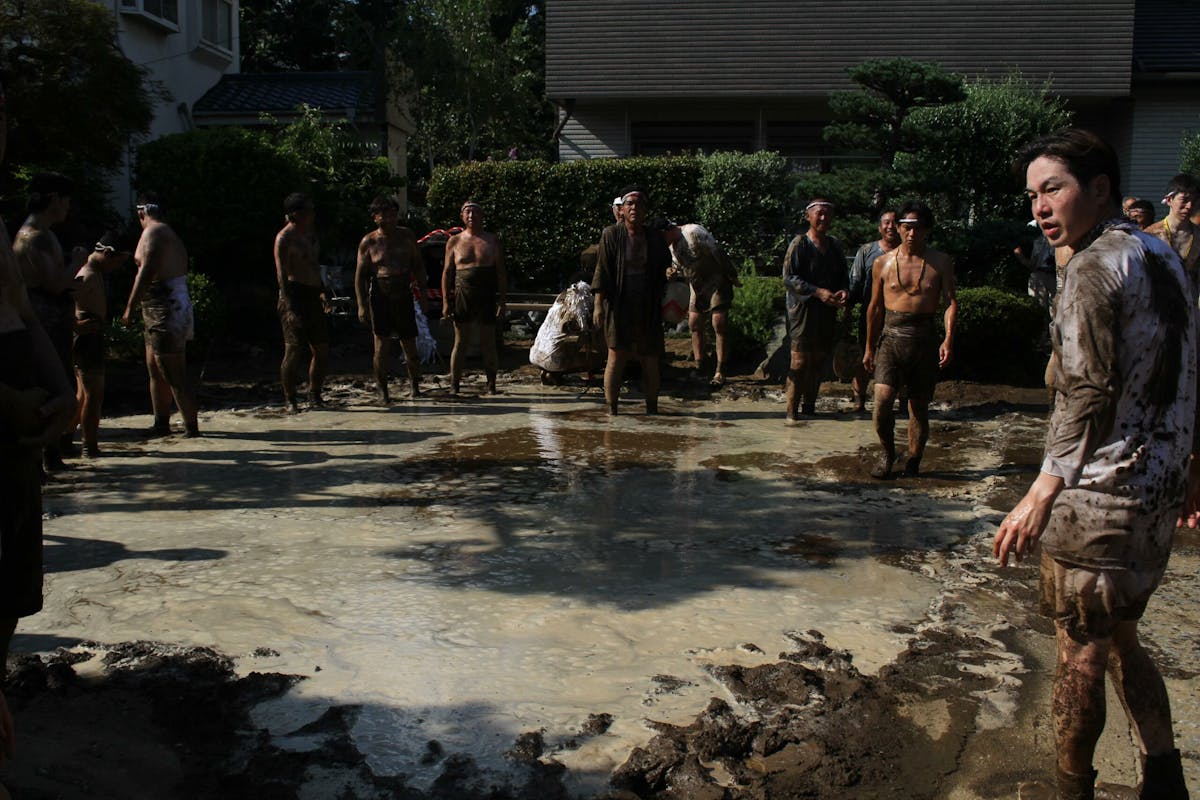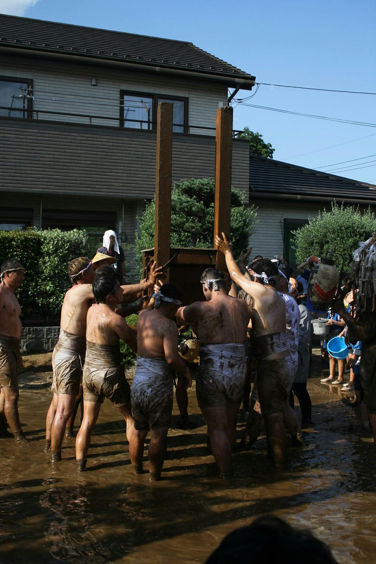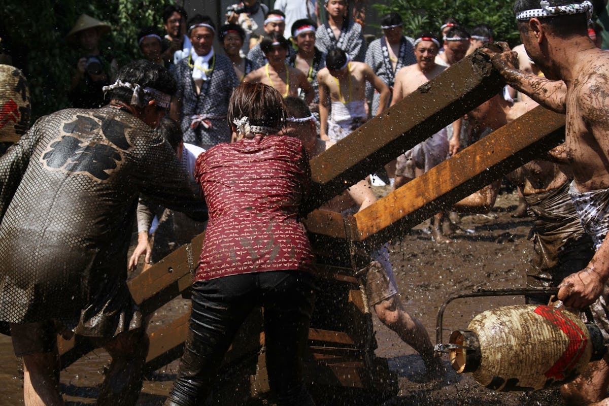 私も撮影中にあえなく派手に泥まみれになったのですが、隣のおじさんが「ご利益あるねぇ」とニコニコ声をかけてくれました。