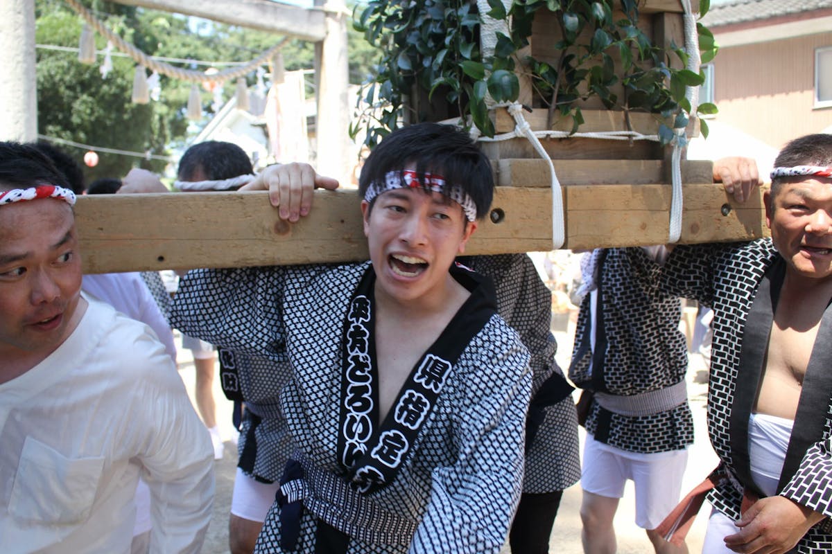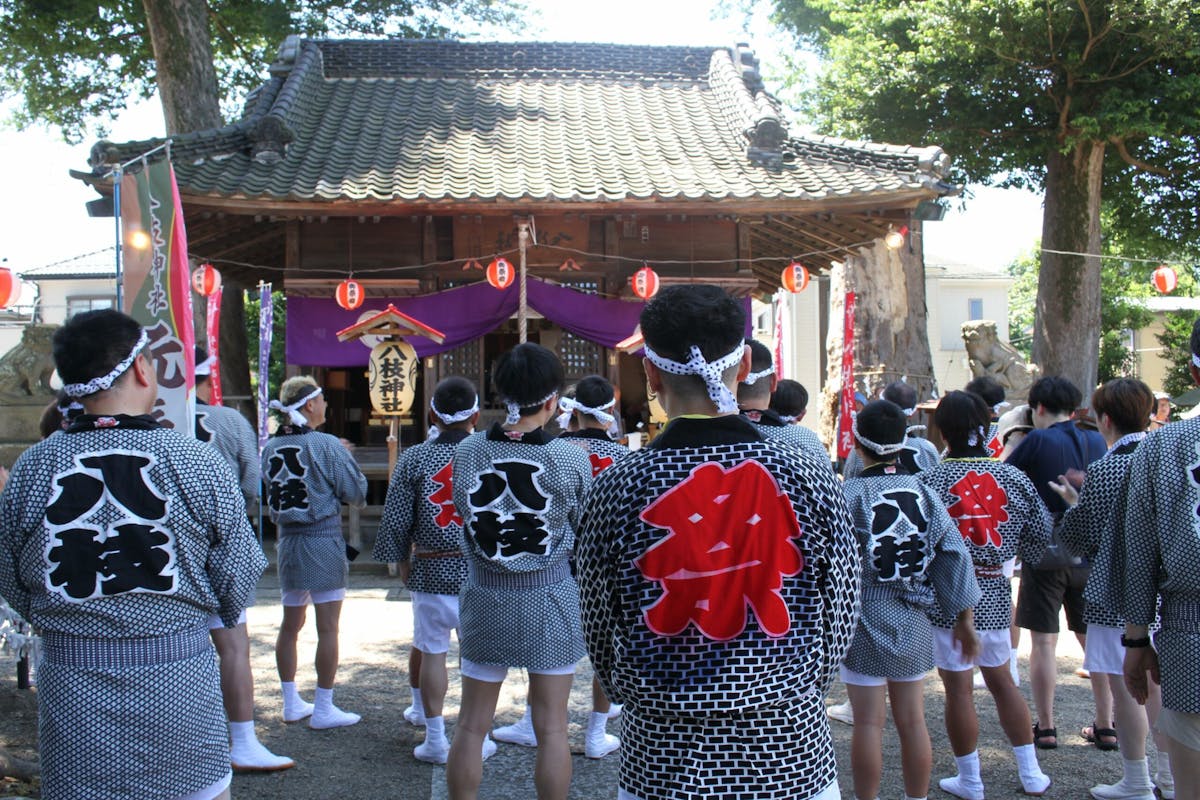 八枝神社に着くと、法被姿の人々が境内に集まっています。4年ぶりの開催ということで、会場には熱気が満ちていて、人々の高揚感が伝わってきます。