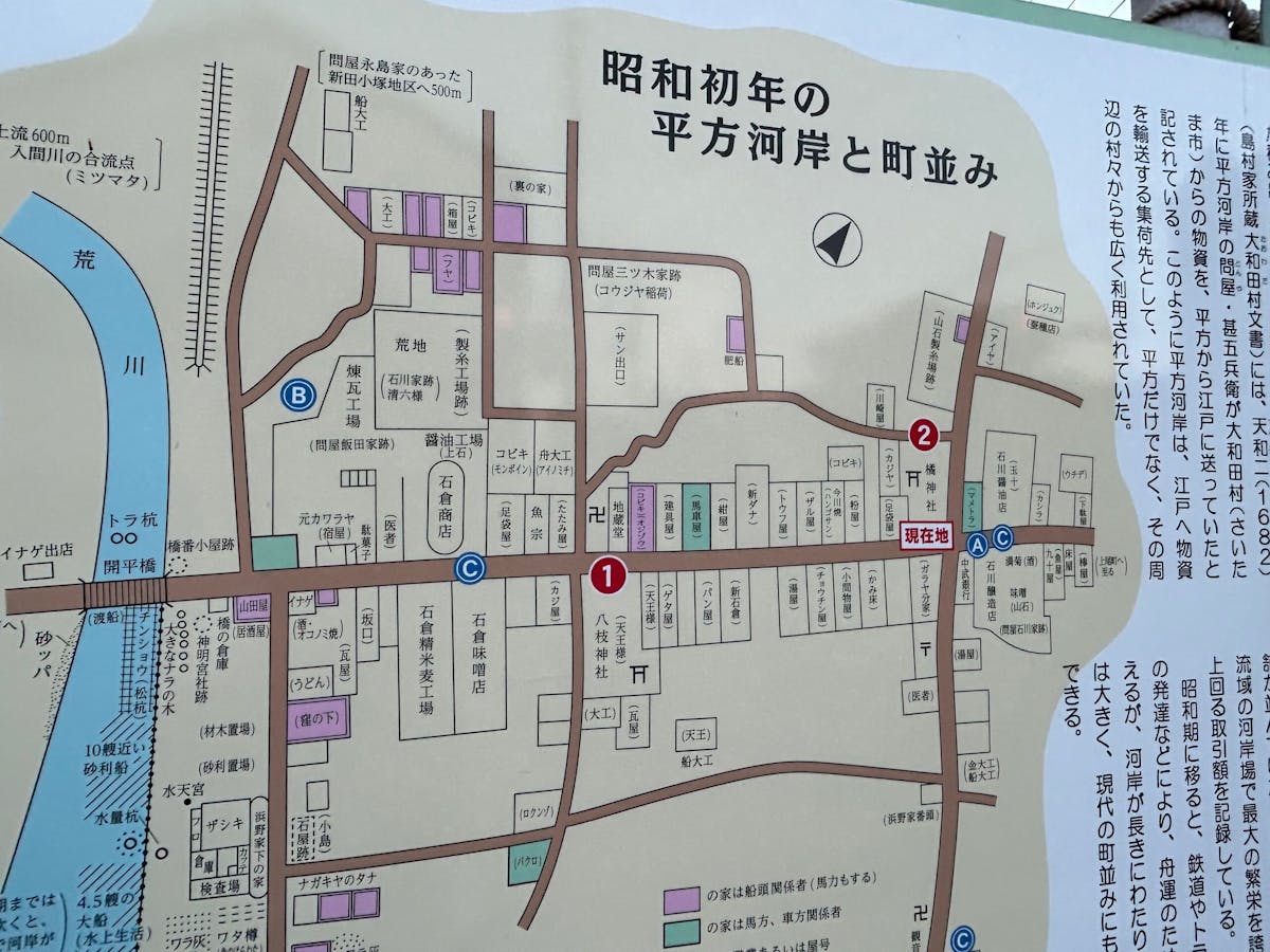 「どろいんきょ」が開催される平方の町は、荒川に接する元宿場町。運送の中継地点となった平方は舟運によって栄え、「平方河岸」と呼ばれました。