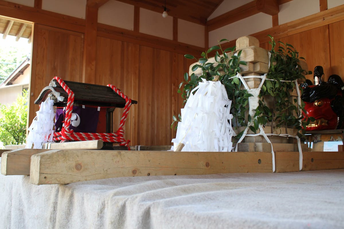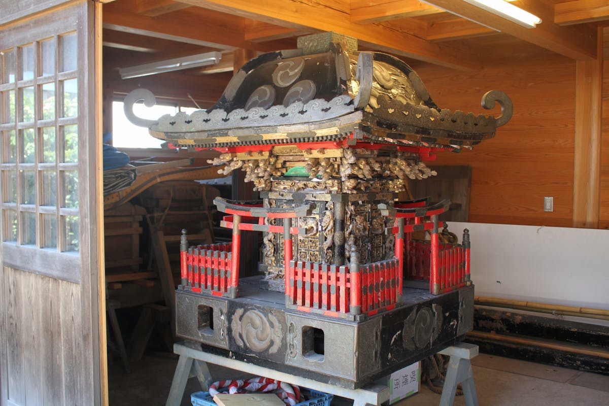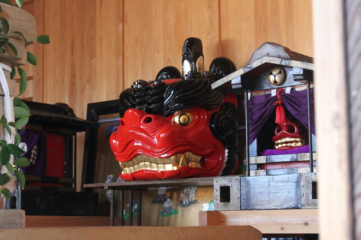 神輿の奥に控える獅子頭は「お獅子様」と呼ばれ、霊験あらたかな存在として周辺地域から信仰対象となっているそうです。