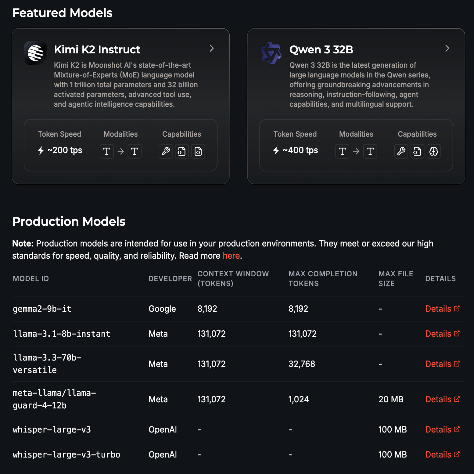 この課題を解決する鍵となるのが、本記事で紹介するGroqの「推論向け高速AI処理技術」です。Groqは独自のLPU(Language Processing Unit)により、最新のオープンソースモデルを高速かつ低コストで実行する環境を提供します。実際に、先に挙げたKimi K2やQwen、Llama 4といったモデルの多くが、リリース直後からGroq上で利用可能となっています。