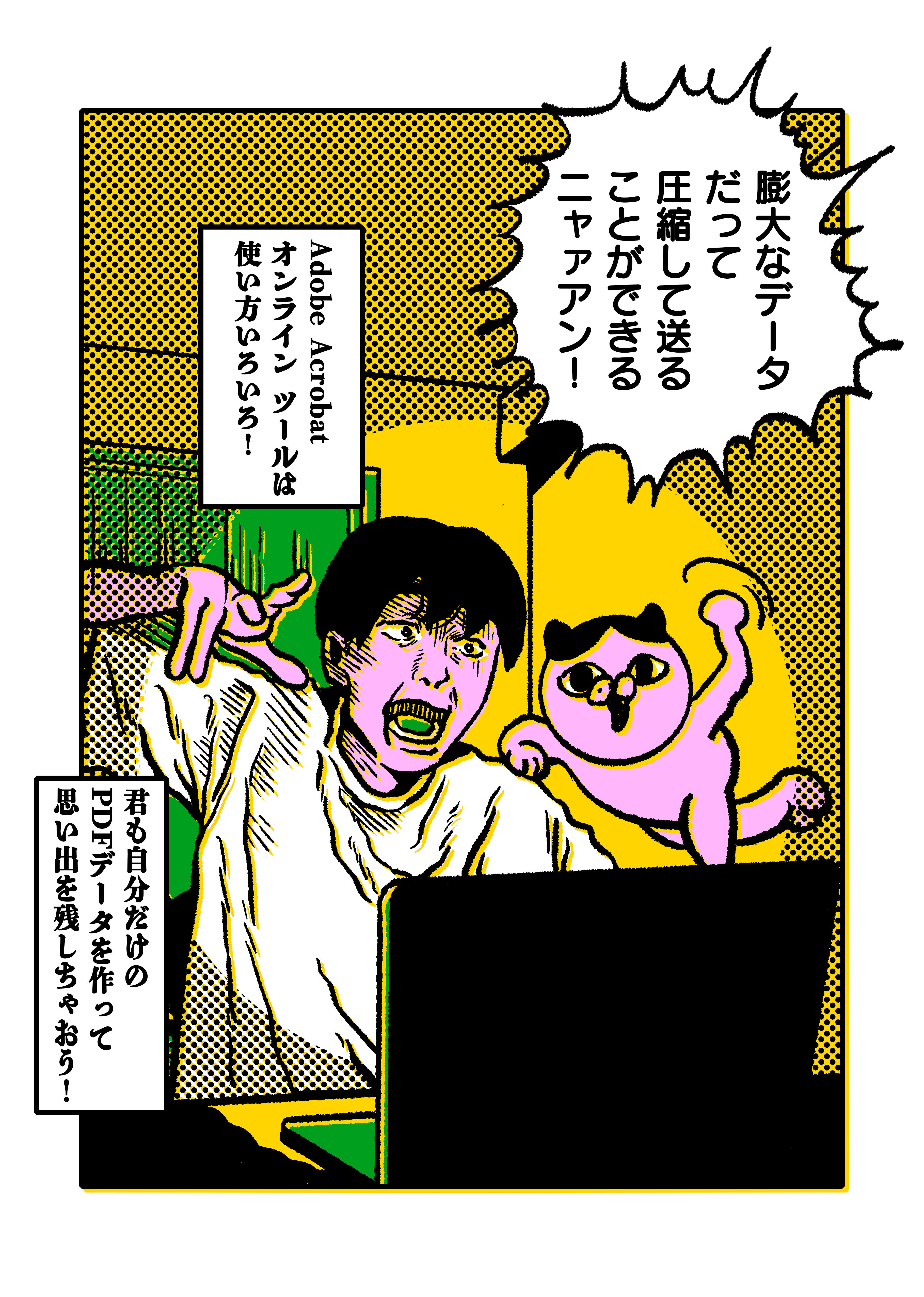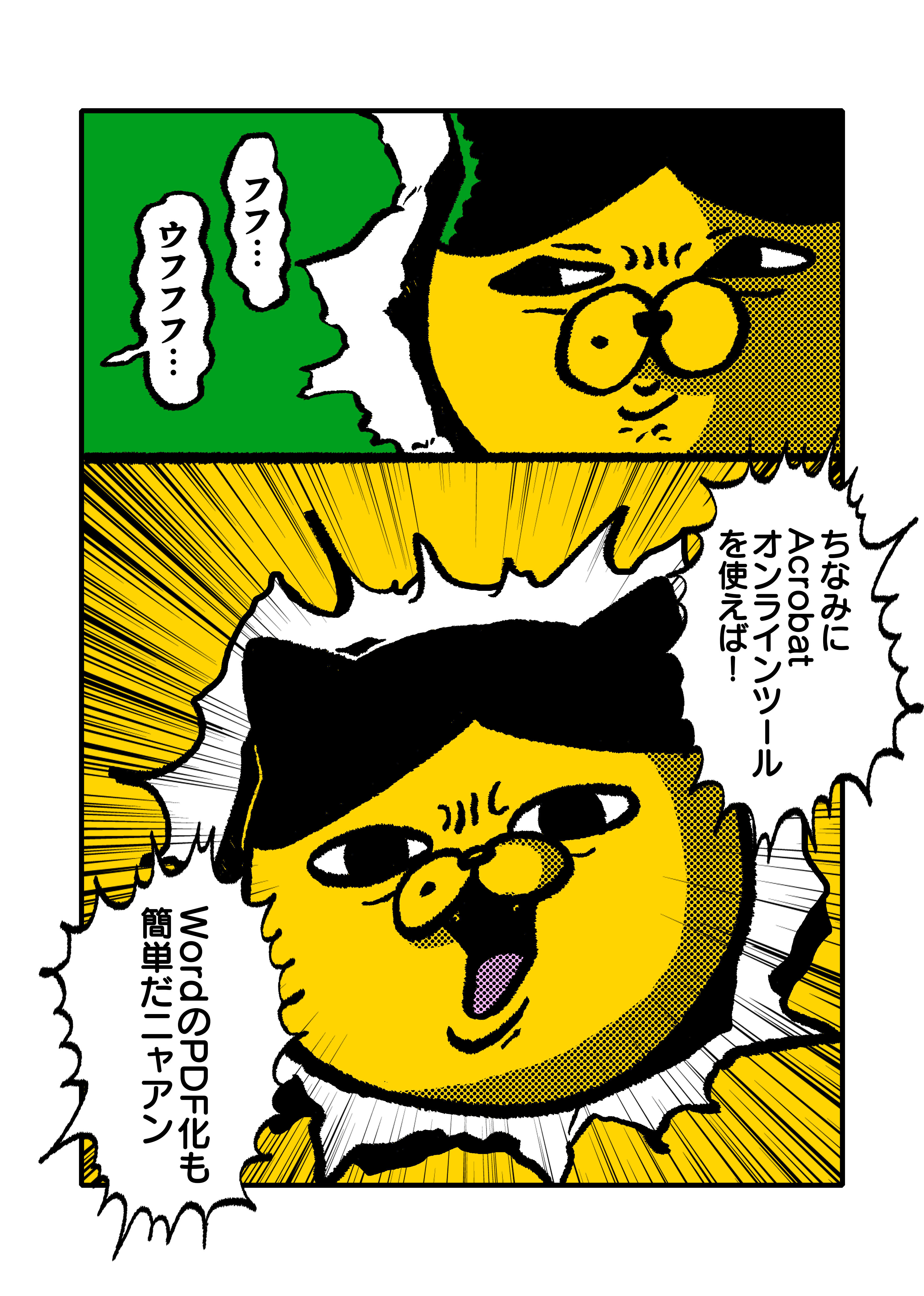 特にAcrobatオンラインツールは、作中でも2人が使っている(ネコが紹介している)ように、WordをPDFに変換したり、PDFのデータを圧縮したり。