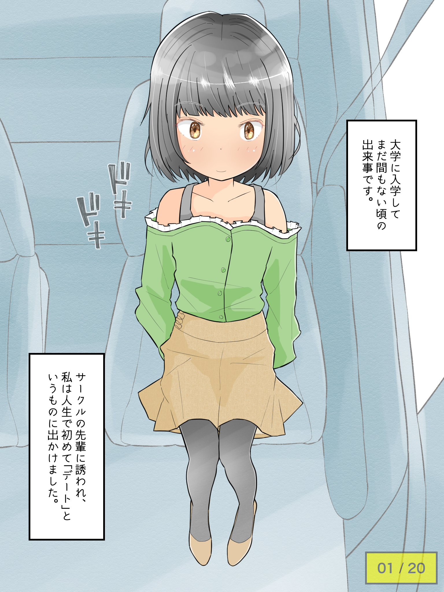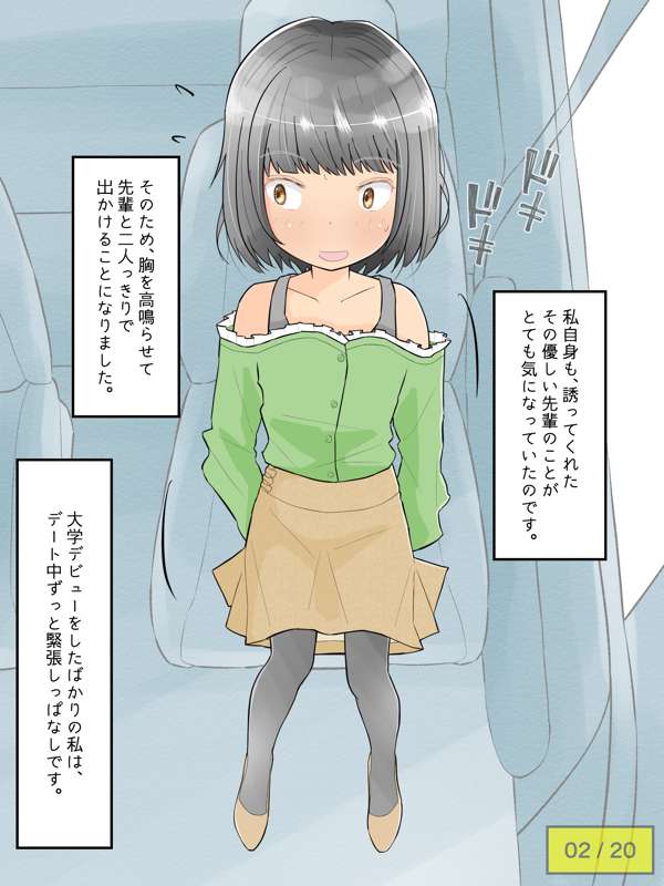 憧れの先輩と、念願叶い初めてのデートに出かける女子大生。