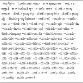 CDNに移行したApacheのミラー条件に、Apache httpdの利用が求められていた時期があり、最後まで使い続けました。ソフトウェアはコンパイルして使用しており、公開FTPサーバーでのファイル転送に特化し、機能を最小限にすることでセキュリティリスクを抑えるようにしていました。以下のコンパイルオプションで、CGIや認証などの一般的に使われる機能は無効化され、公開FTPサーバーに必要なDirectory ListingやAlias機能が有効化されていることが見ていただけると思います。