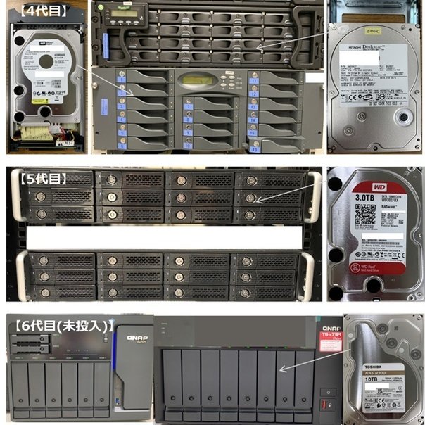 【HDD】 4代目=500GB/PATA&SATA、5代目=3TB/SATA、6代目(未投入)=10TB/SATA