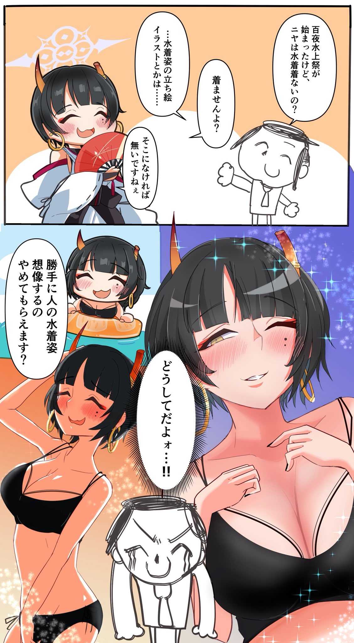 スレンダー気味のキキョウですらこの水着はヤバいのにムチムチデカパイのリオが着たらエ駄死どころじゃなくなってしまうよ