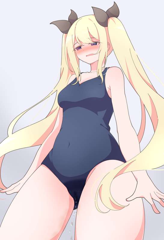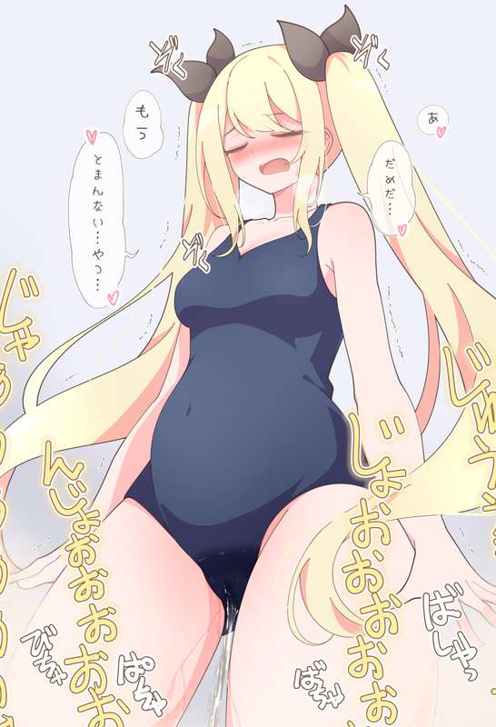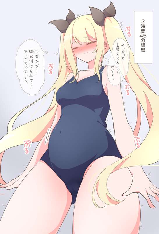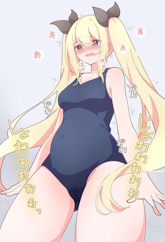 【リメイクイラスト】お腹パンパンで水着をきておもらししちゃう女の子【イラスト1枚+差分】 (Pixiv Fanbox)