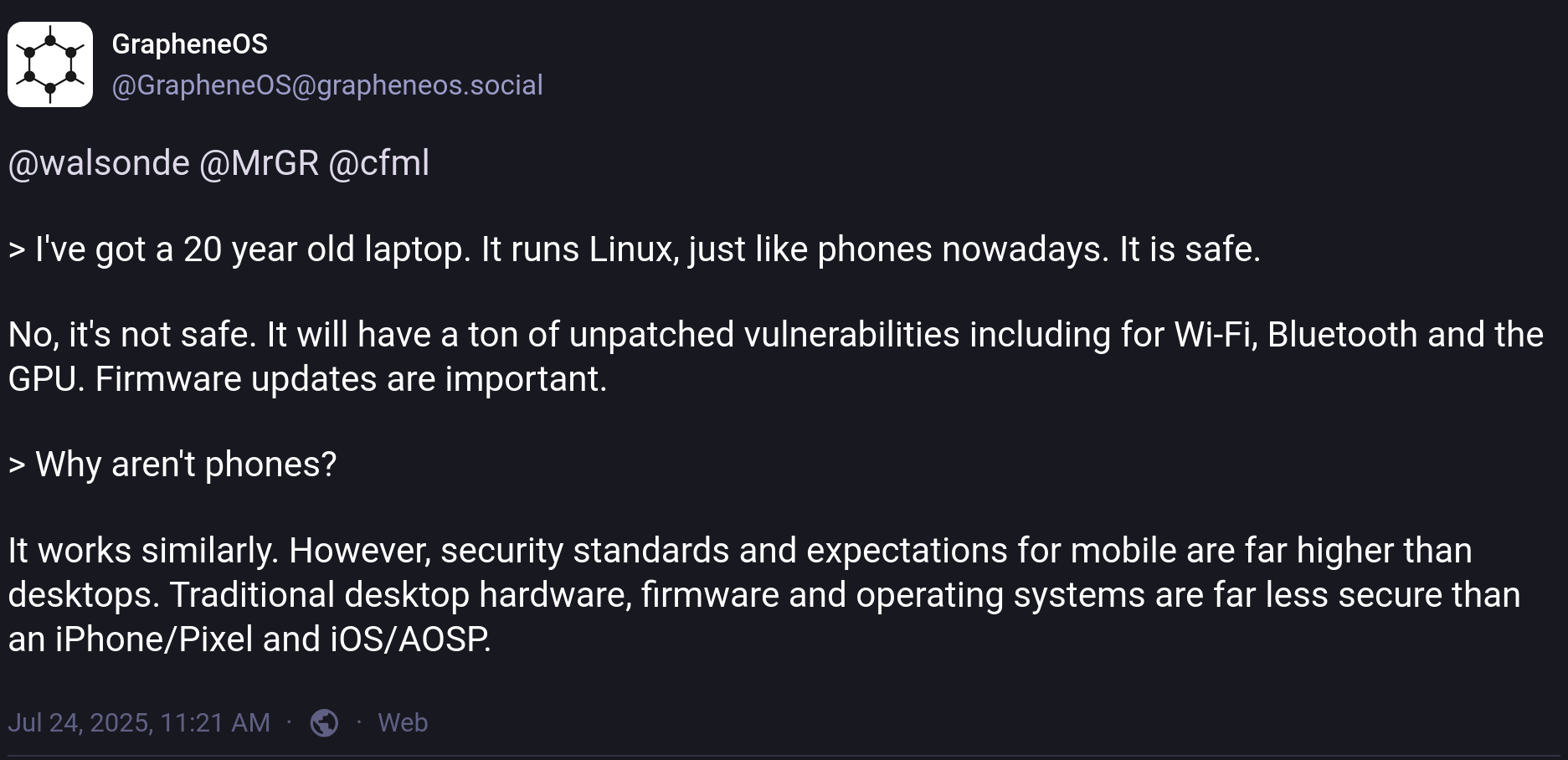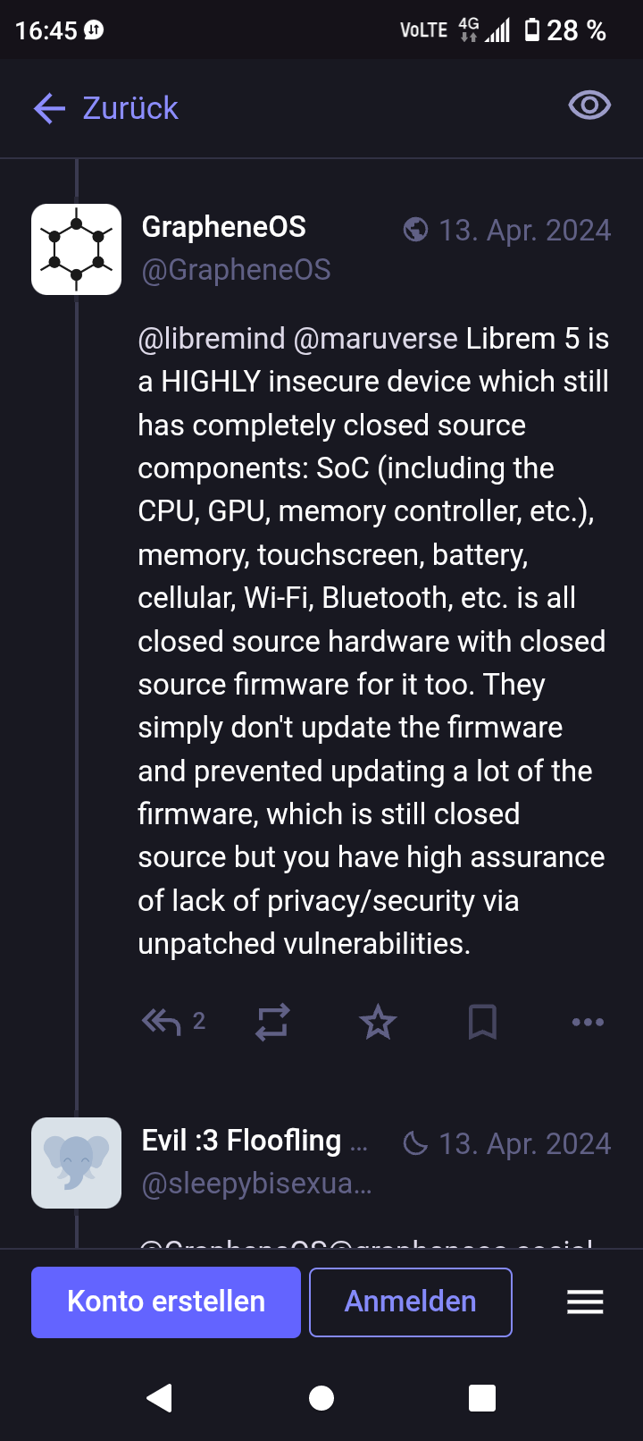 >>106261941yeah lmao, "here is a proprietary backdoored obfuscated piece of malware, its totally fine! oh and by the way we write a totally private android rom for you too, if you ask too many questions or are concerned about binary blobs we will ban you from our matrix room."