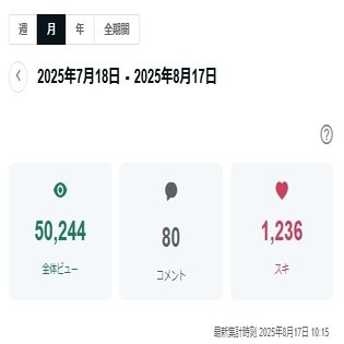 📈 月間ビュー数が 50,224 に到達しました!