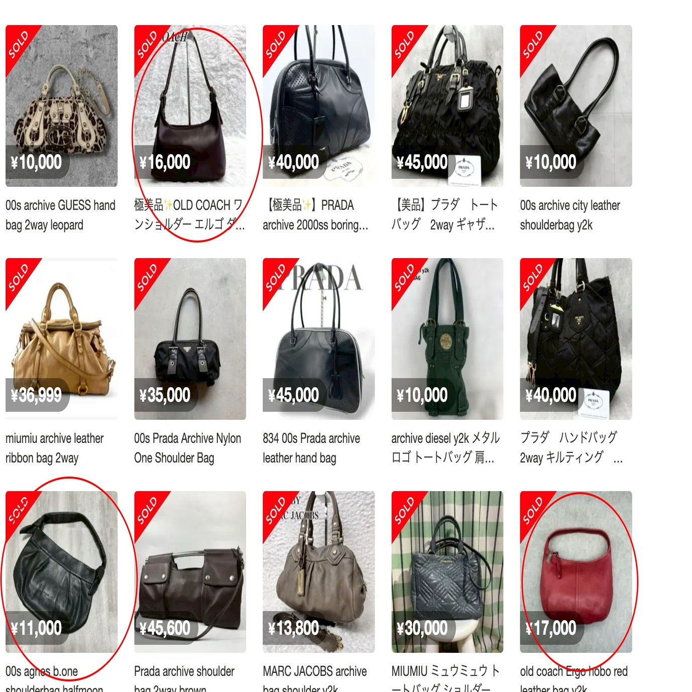 この履歴からワンショルダーのバッグは海外業者に売れやすい形なのかな?と仮説が立てられます。