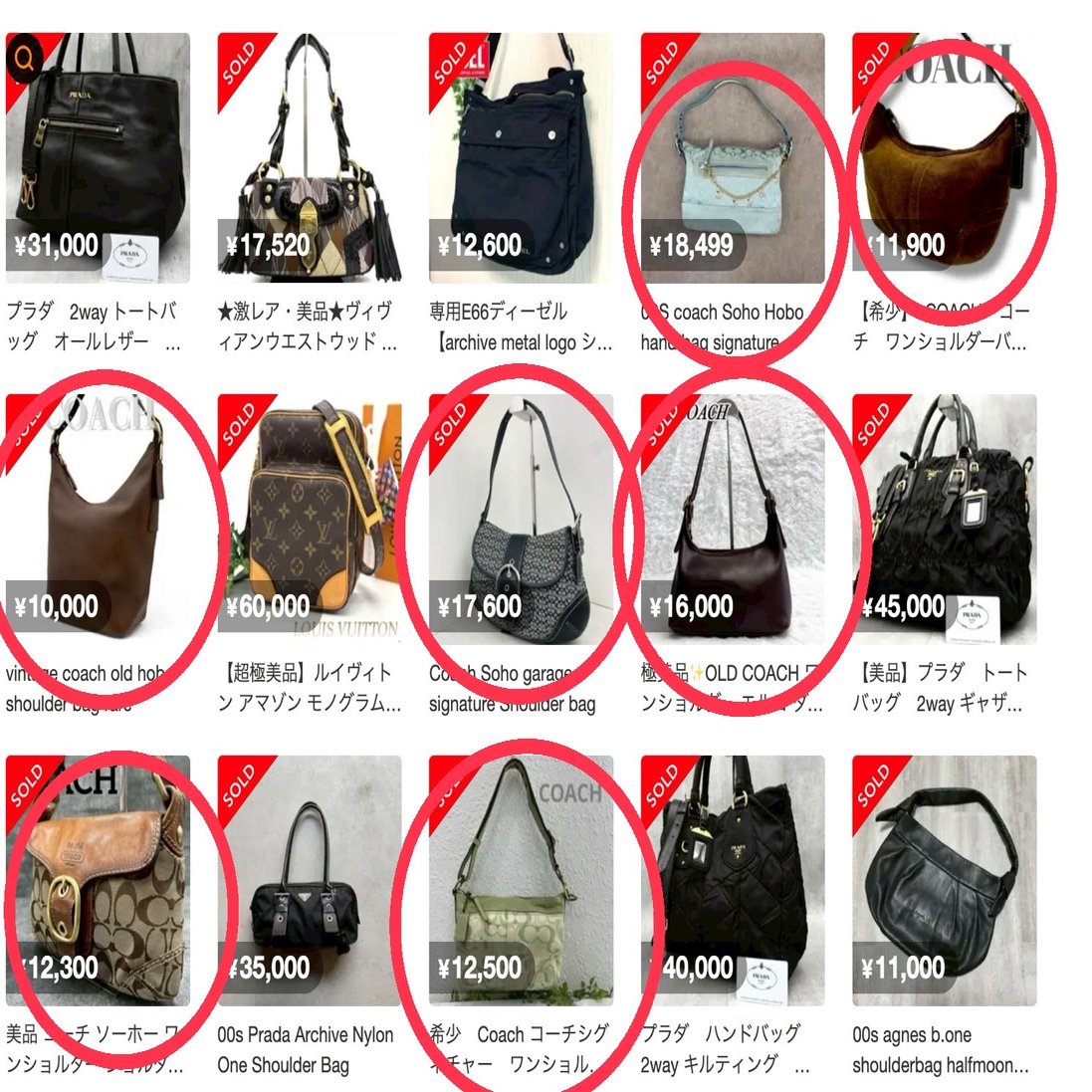 検索すると上記の画像のように【コーチ】のワンショルダーのバッグが特に売れてるのが分かると思います。