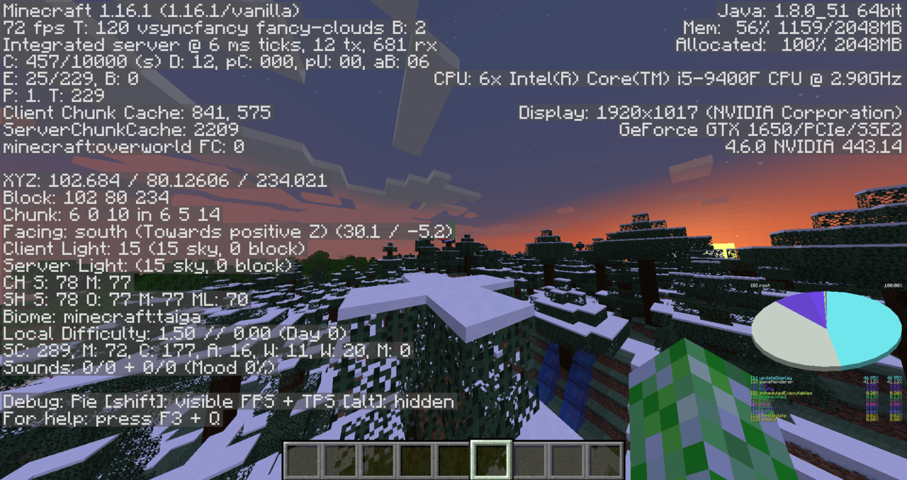 Java Edition 1.16.1でのデバッグ円グラフのスクリーンショット