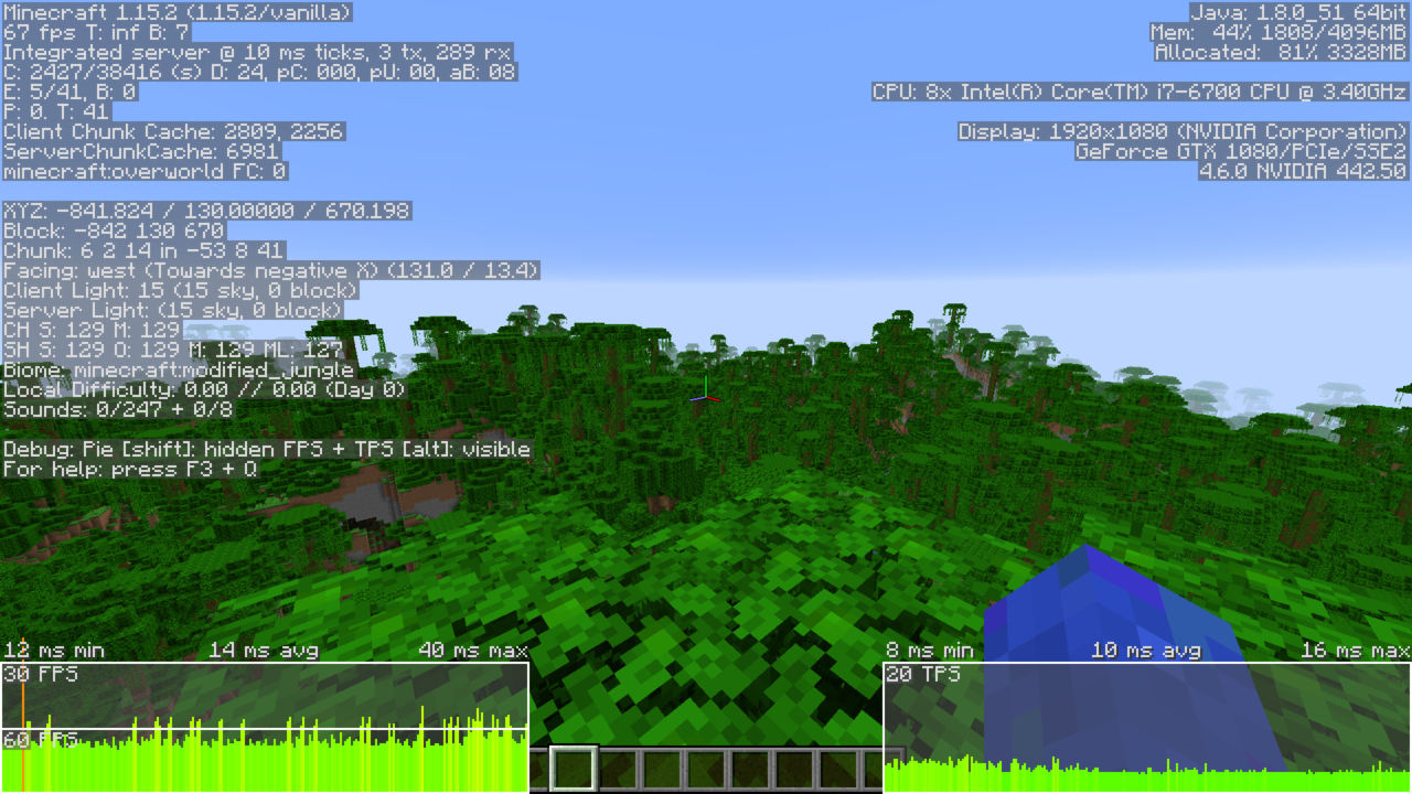 Java Edition 1.16.5でのフレーム時間のスクリーンショット