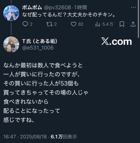 そもそもチキンって予約無しで53個も売ってるんスか
