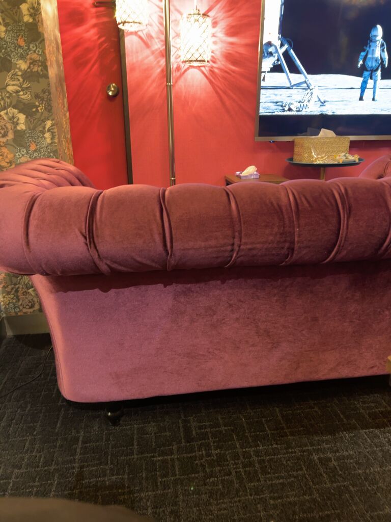 待合室は紫を基調としたソファが置いてあります。座り心地もよく、高級ソープのような待合室でした。待合室で待っているとスタッフさんが、「女の子の準備が整いました、こちらでお待ち下さい」と伝えに来てくれます。なんと、スタッフさんと入れ替わりで、指名した女の子が待合室まで迎えに来てくれます!
