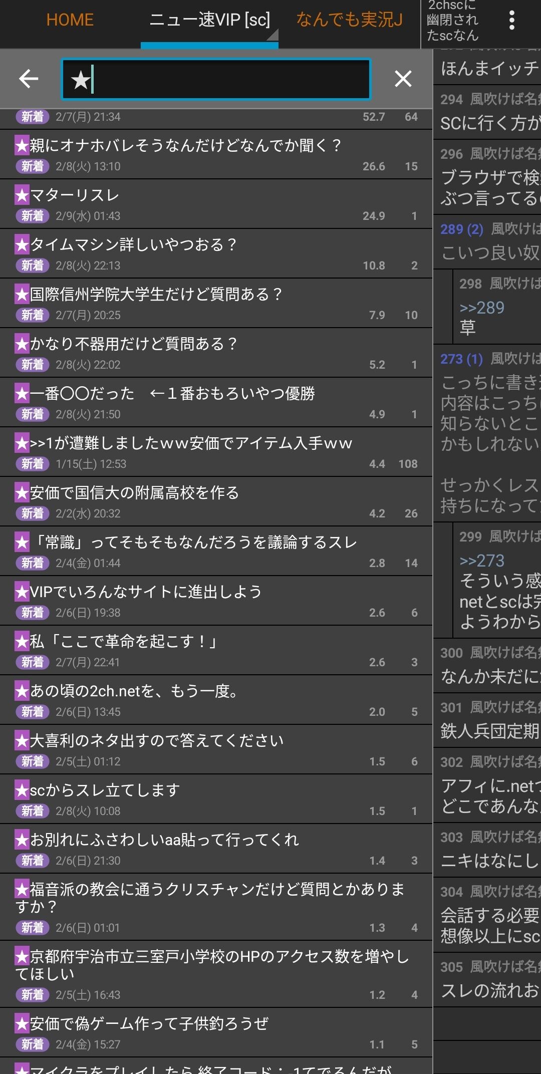 sc民が見たいならスレタイ検索で「★」ってやるとええで