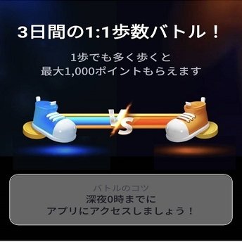 応募すれば、歩数が近い人と3日間で相手よりも一歩でも多く歩くと、最大1,000ポイントもらえます。