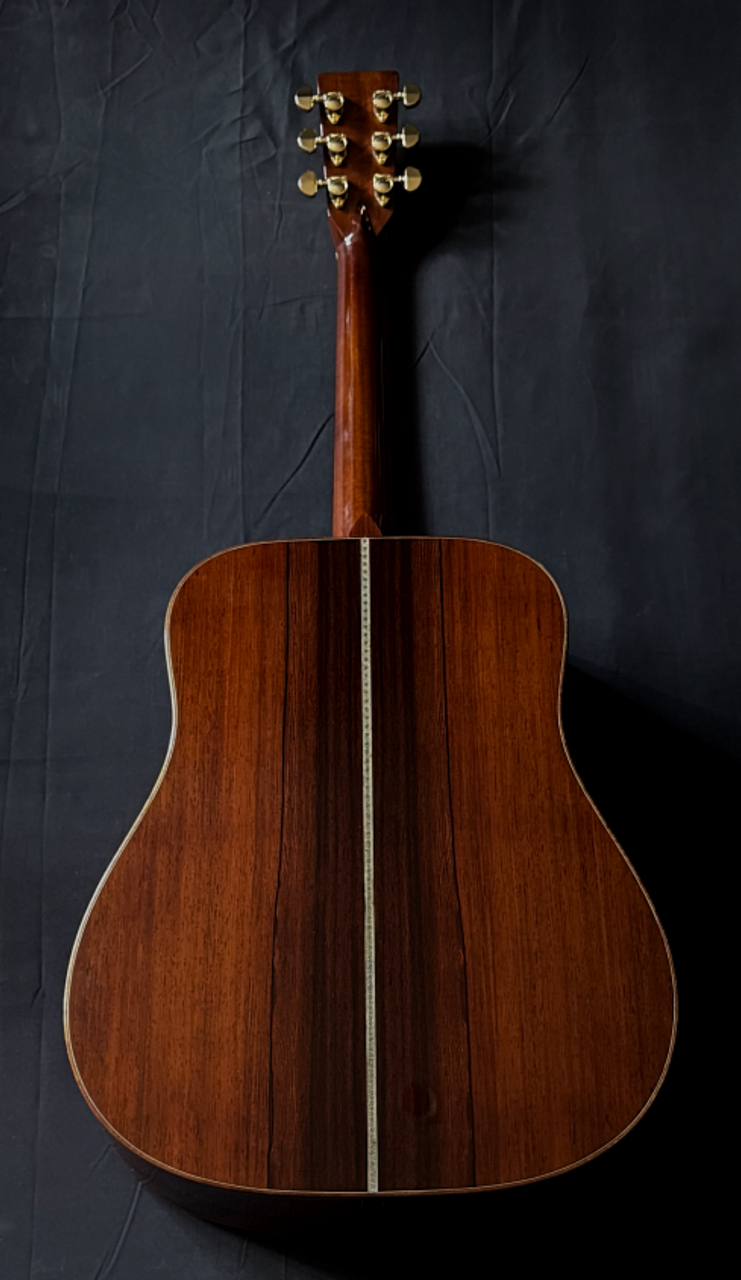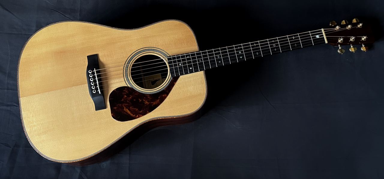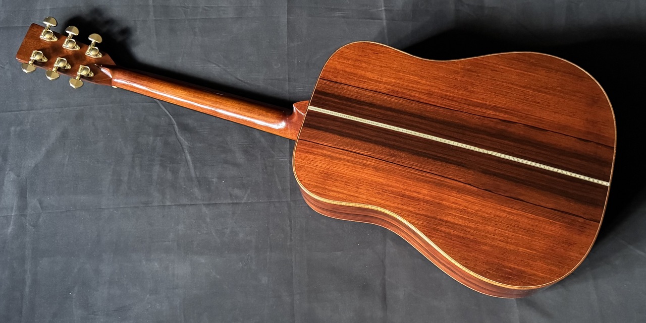 本器のボディサイズは、ドレッドノート。トップには最上級(プレミアムグレード)のジャーマンスプルースを使用、通常のスプルースには備わっていないジャーマンスプルースならではの落ち着きのある音色感と説得力のある表現力とを兼ね備えます。そしてサイド&バックには、沖田正和秘蔵の極上ココボロ(プレミアムグレード)を使用!!ココボロ固有の硬質な特性が剛性感のあるサウンド!!トップ・サイド・バックに厚みのある材を使用、通常のメーカー、製作家には真似のできない重厚なボディーとして組み上げられております!!極上ホンジュラスマホガニーのネックとトップ、サイド、バックとが沖田正和の手によるスペイン式ネックジョイント方式で見事に組み合わさり通常では考えられないバランシングと剛性の高い音の出力、大変説得力のある、ジャーマンプルースならではの説得力のある魅惑のサウンドを出力、実現しております。沖田正和独自のスキャロップドXブレーシングにより、スキャロップとは思えぬ程の厚みのあるサウンドを出力いたします。またOKITA GUITARSのさらなる特徴となります、生音そのものでの抜群のバランシング、コード感の、ピッチの素晴らしさにより、ライブ、録音時とあらゆる音楽ジャンル、奏法、運用においても安心して音楽を委ねることを可能にした唯一無二のまさに究極、夢のギターです!!!