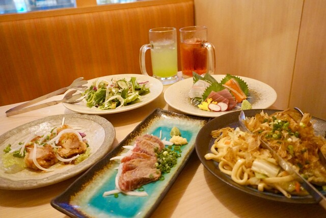 今月の定例会。 飲み放題付き4500円のコース。 ①本日の前菜 ②プリプリ海老の温玉シーザーサラダ ③鮮魚のお造り3種盛り合わせ ④鹿児島県産・地鶏の香味揚げ ⑤野... 詳細を見る