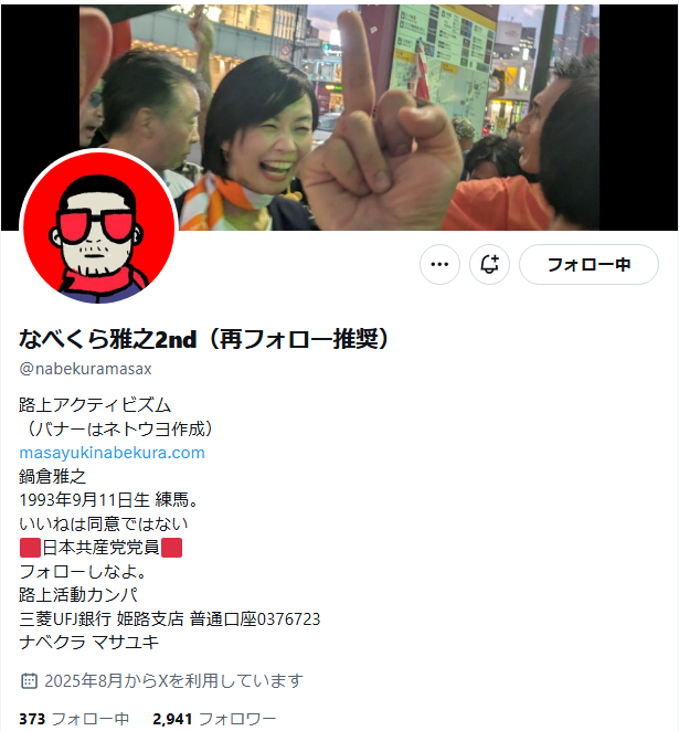 やれやれ自分のトップに固定したのですね、この日本共産党員の方。 著名になったこと自体が嬉しいのだろうなあ。 しばき隊CRACの関係者は、支援ツイートす。 共産党板橋区委員会では、8.8の後に講演と。 共産党中央は、ヨイショしてきた人だが、今は知らない振り。 シンパではなくて党員ですがね。 pic.x.com/7jArFjUyt7