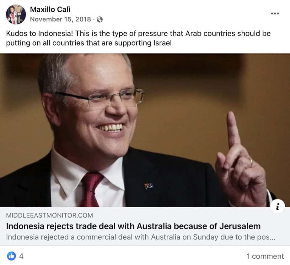 Cali Praised Indonesia’s Government for Rejecting Trade Deal With Australia Over Israel Ties