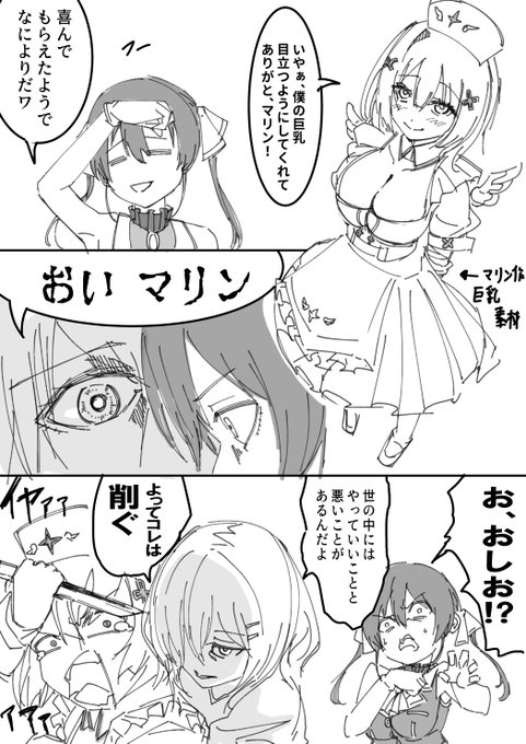 アーカイブ見たので切り抜き絵本絵でも描こうかな。 仲良きことは良いことで、ライン越え会話によってアイドルとして何かを削っていくかなマリであった。 #マリンのお宝 #宝鐘マリン #かなたーと #天音かなた #かなマリどつきあい