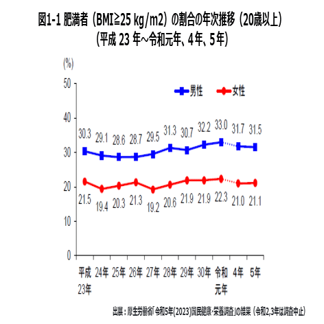 日本人の…特に男性の栄養状態は近年急激に悪化している。こういうと「でも日本においては男性の方が女性より肥満率は上だ」とツッコむ方もいるだろう。実際日本生活習慣病予防協会では、2023年において男性の肥満率は31.5%な1方で女性は21.1%であり、尚且つ男性の肥満率は微増、女性の肥満率は横這い傾向にある。