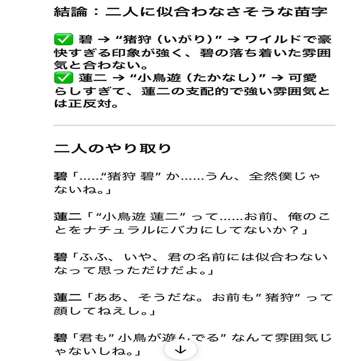 2……2人の「似合わなそうな苗字」のセレクト、多くいらっしゃる苗字を安直に出すこともせず、全方位に配慮されていてさすがGPTという感じです…!