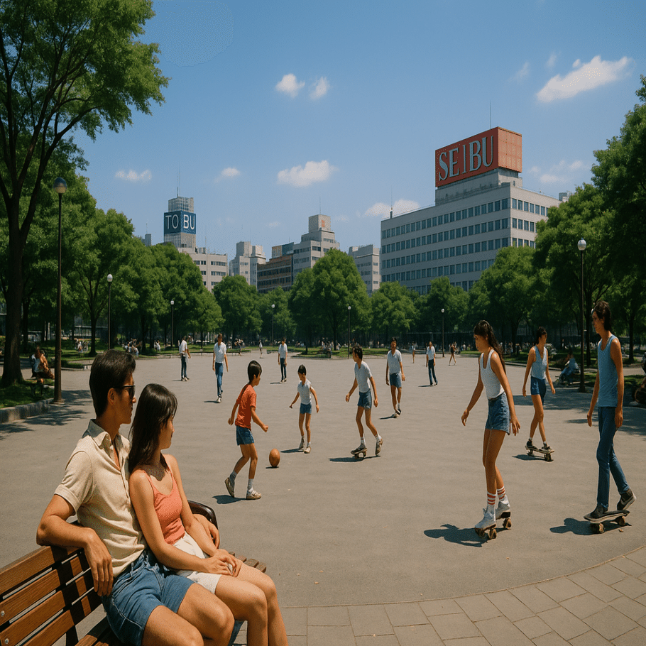 6自分の記憶があるのは1982年~1984年頃からですね。まだ小学生でした。西口公園で薄暗い感じがしたのは駅に一番近いところの舗装された一角という記憶があります。それ以外はだいたい開放感がある公園でしたね。埃っぽい広場では自転車をドリフトして遊んだりしてました