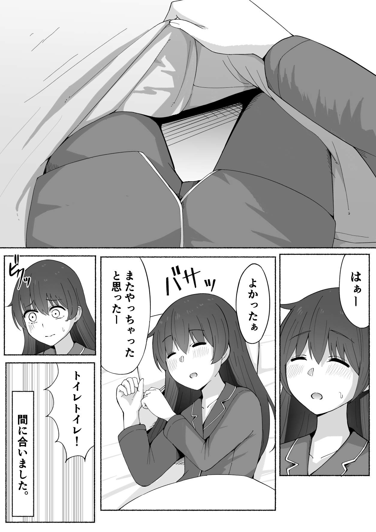 新年一発目は、初夢で温泉に入る夢を見てしまった女の子でした。無事にトイレに行けて良かったですね。みなさんも今日寝る前はしっかりトイレに行っておきましょうね。