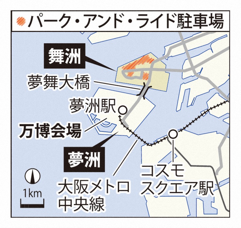 一部の客が、万博会場がある人工島・夢洲(ゆめしま)(大阪市此花区)からパーク・アンド・ライド駐車場のある舞洲(まいしま)(同)へ徒歩で移動した可能性がある。今回の問題を受けて、万博協会は中央線のトラブルが発生した場合、舞洲でのマイカーの出迎えを認める対策を公表している。【岡崎英遠】