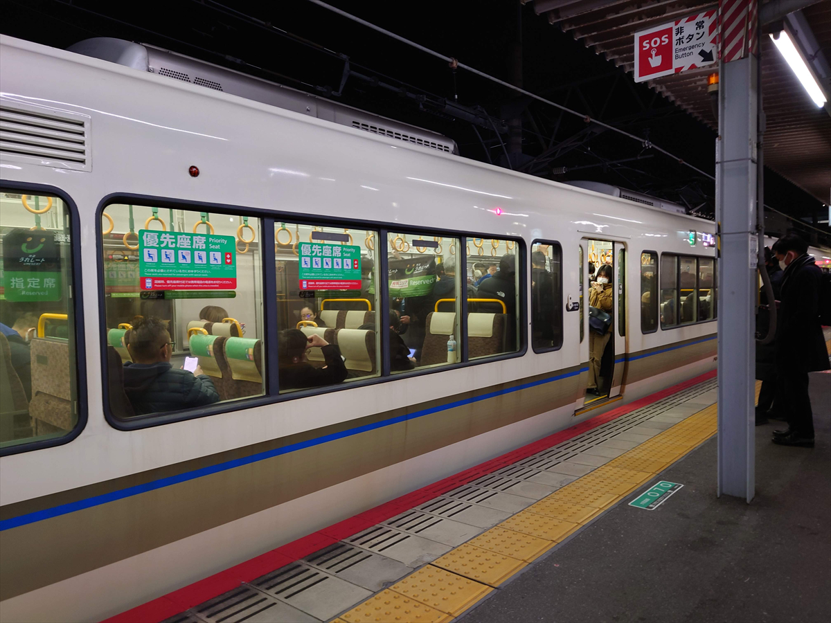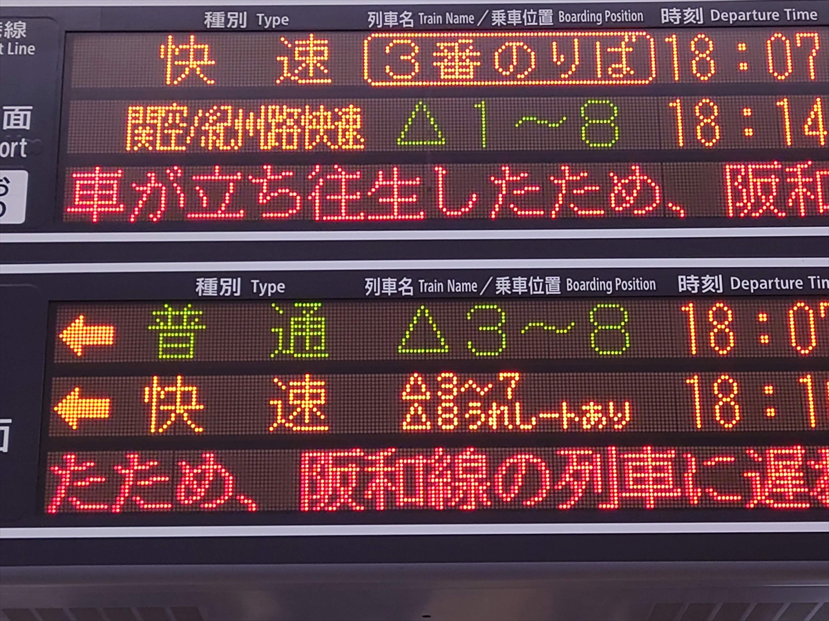 実際402Kの次に「うれしート」設定のある、天王寺19時10分発の快速(列車番号420K)は、8両編成であることに加え、混雑が収まっている時間帯であることから、上述のような混乱は見受けられませんでした。