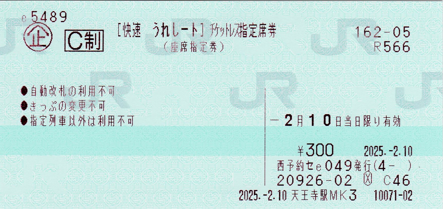 ▲「うれしート」チケットレス指定券。