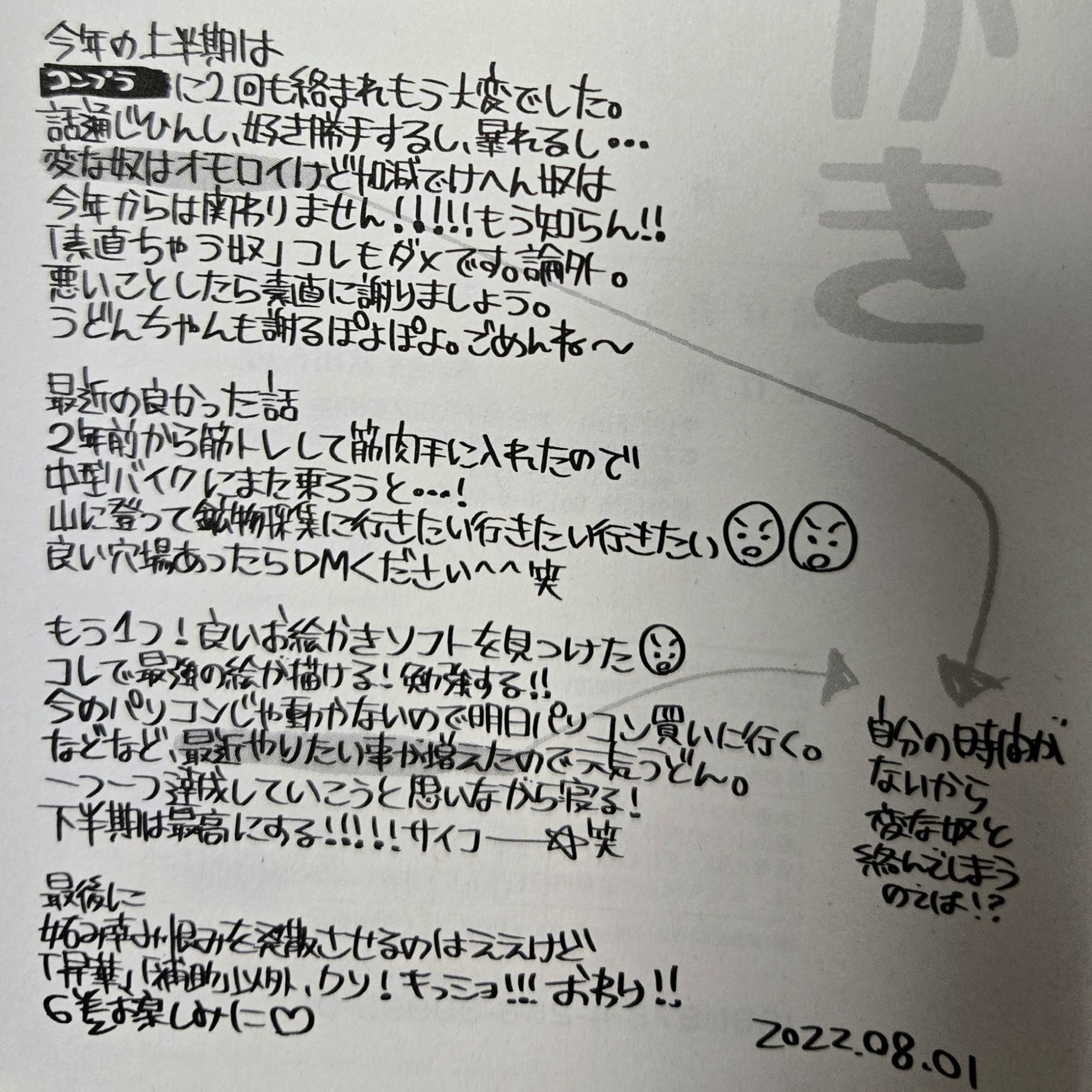 出版社移籍に伴い発売された『君に愛されて痛かった』新装版第5巻あとがきでは、「妬み辛み恨みを発散させるのはええけど「昇華」「補助」以外、クソ!キッショ!!!おわり‼」と語っていますし、SNSでの発言やあとがきを読んでもそう感じます。