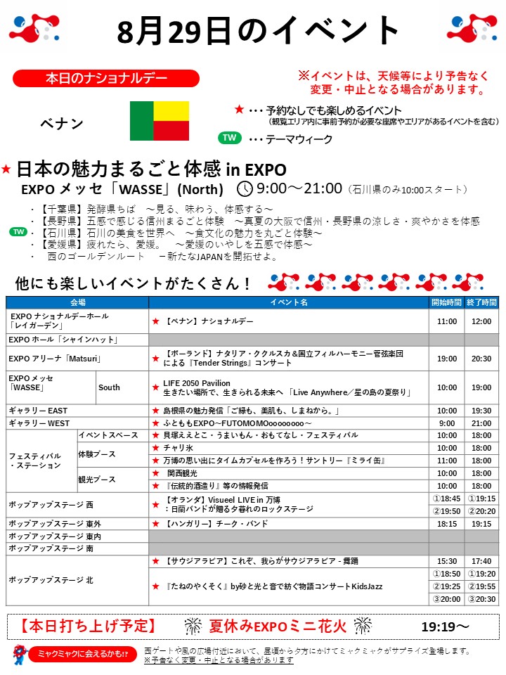 8月29日(金)の万博情報です