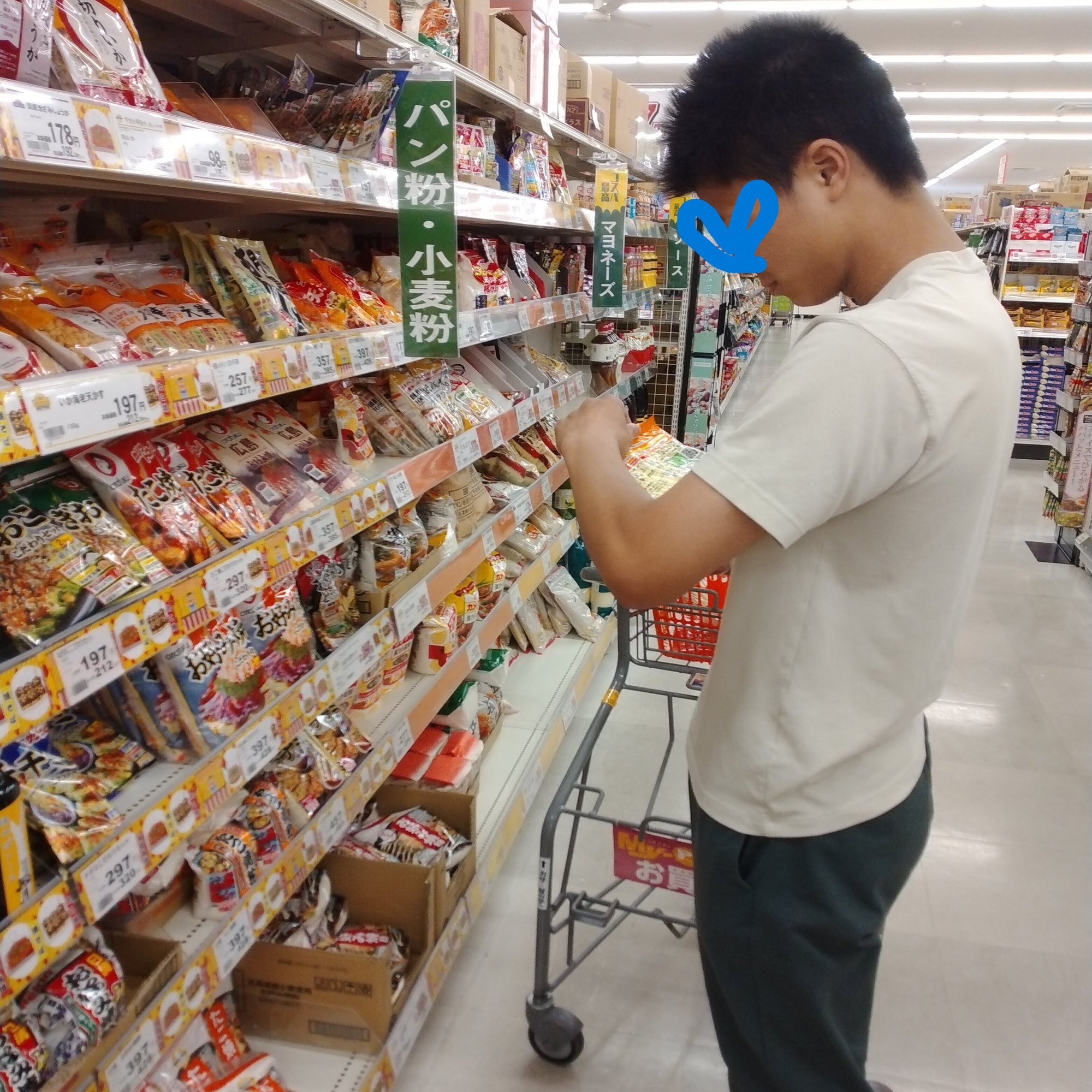 たこ焼きの粉選びに目を光らすタロウさま