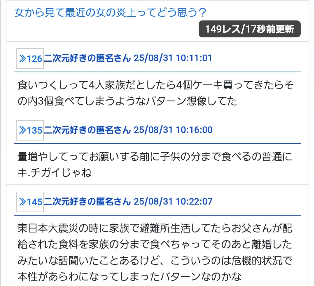それぞれ別々の問題なのに性別でくくって考える意味はあるの? - 24二次元好きの匿名さん25/08/31 07:33:02