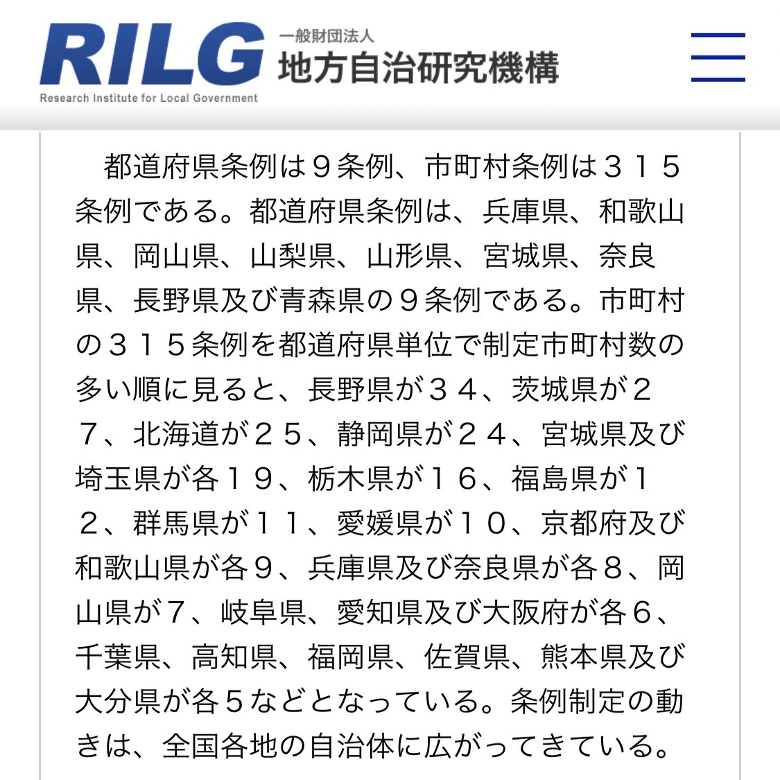 全国で都道府県9条例、市町村315条例。多くが新エネ特措法改正に合わせて2023〜2024年に制定あるいは改正。https://www.rilg.or.jp/htdocs/img/reiki/005_solar.htm