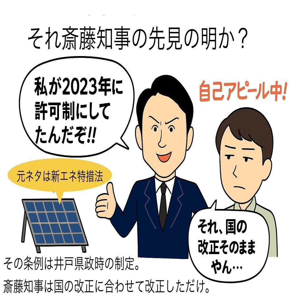 「2023年に条例改正して、太陽光発電パネルを許可制にしたのは、斎藤知事の先見の明だ」は誤り