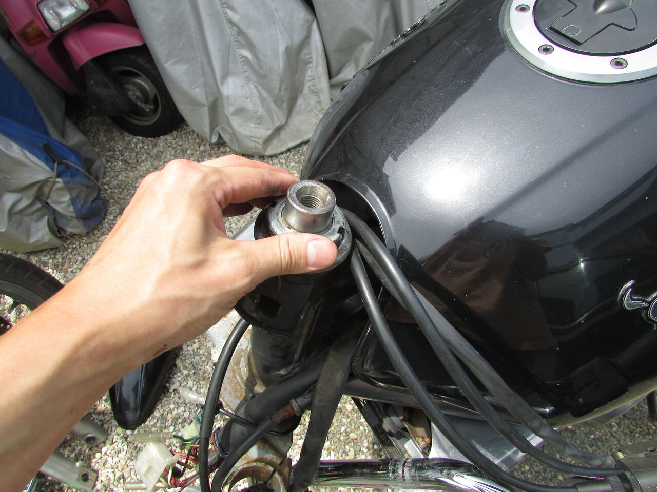 ネイキッドでこれですから、フルカウルともなるとさらに厄介なことになりそうです・・・。大きい方ではやりたくないですね(素)